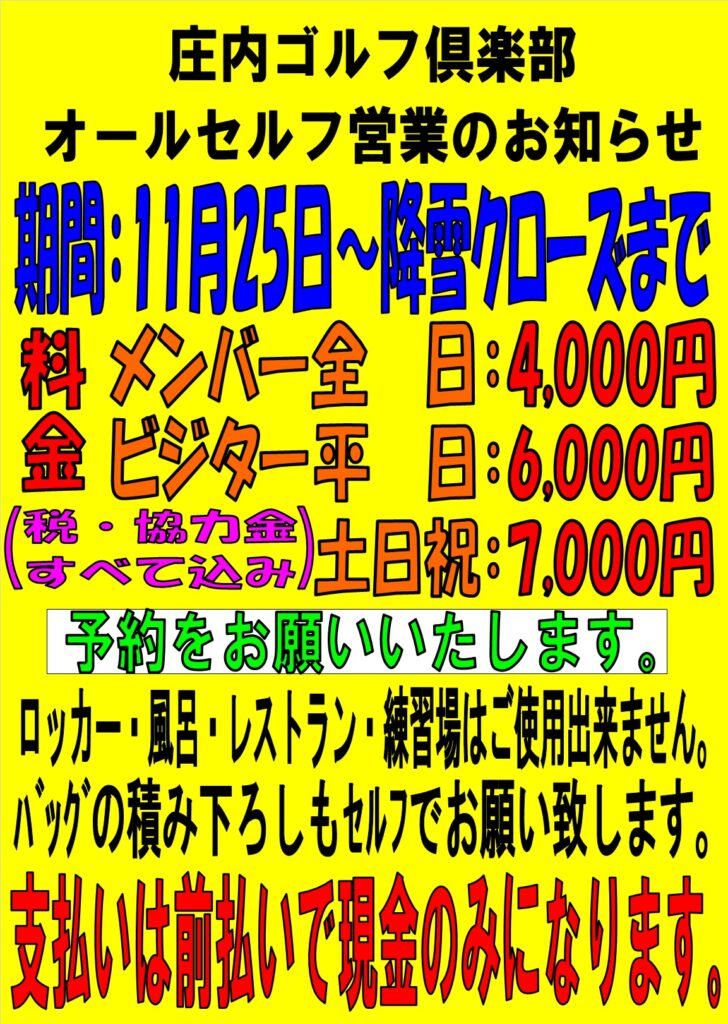 11月25日(火)から積雪クローズまで 【オールセルフ】